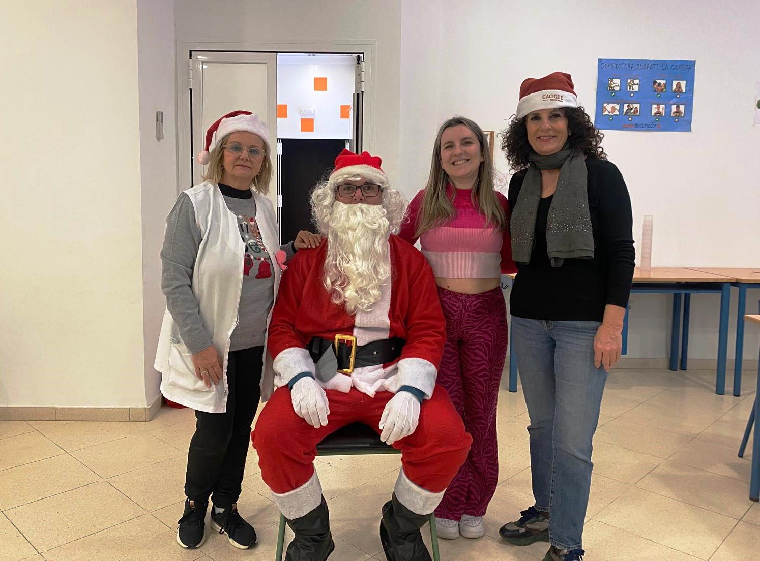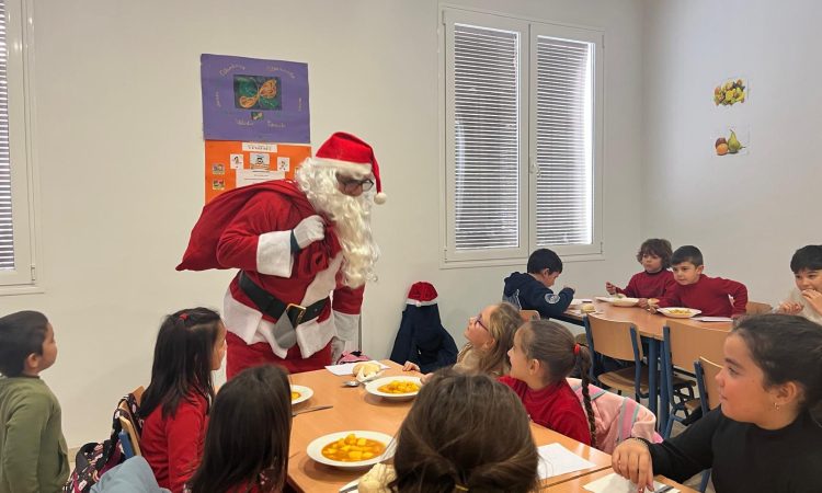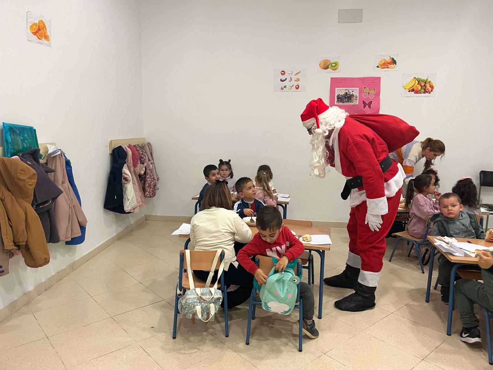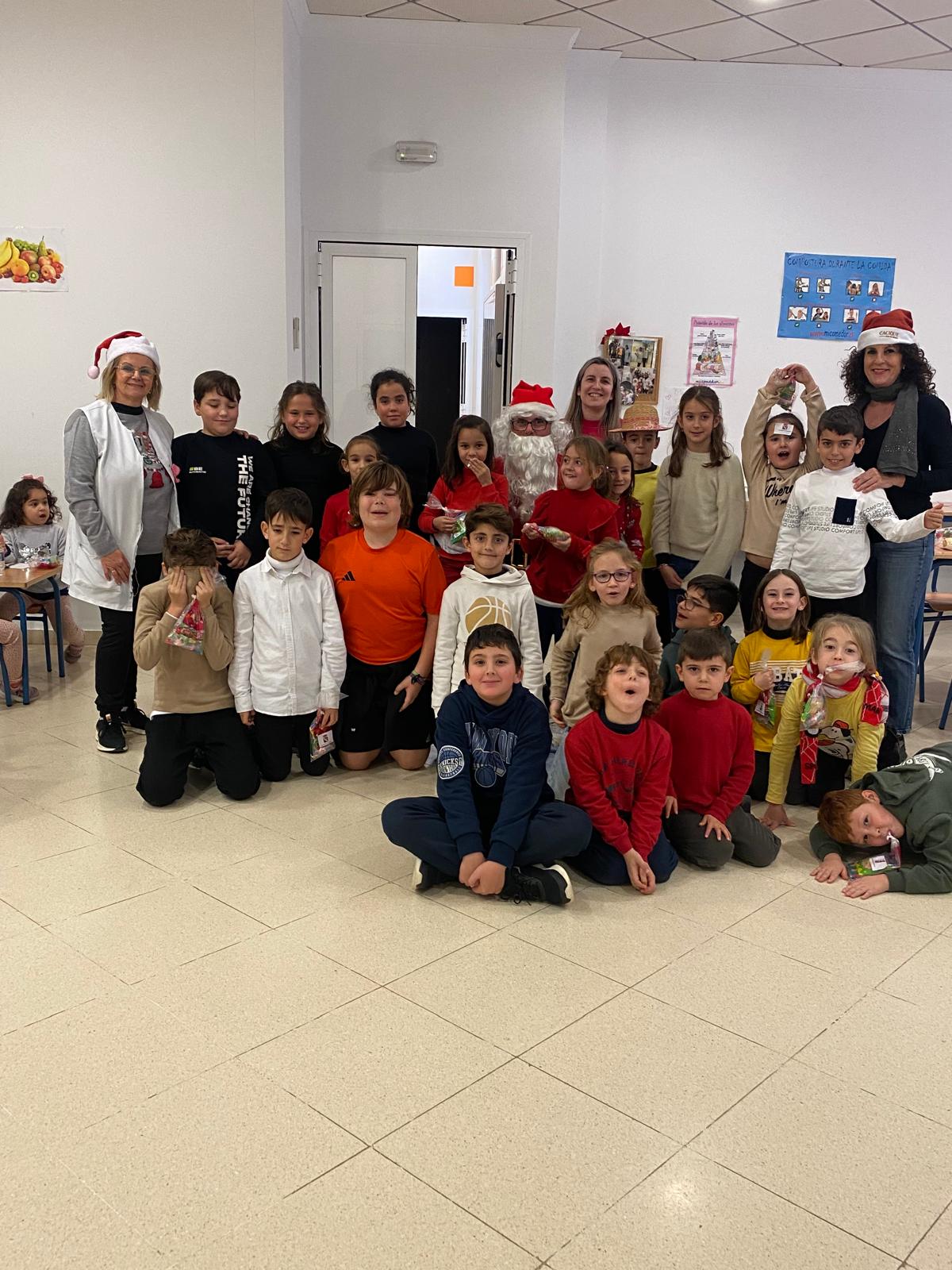 El comedor escolar recibió ayer la visita de Papá Noel, algo que sorprendió gratamente a todos los niños y niñas que se encontraban almorzando, que además de saludarle, pudieron contarle sus peticiones para estas fiestas.