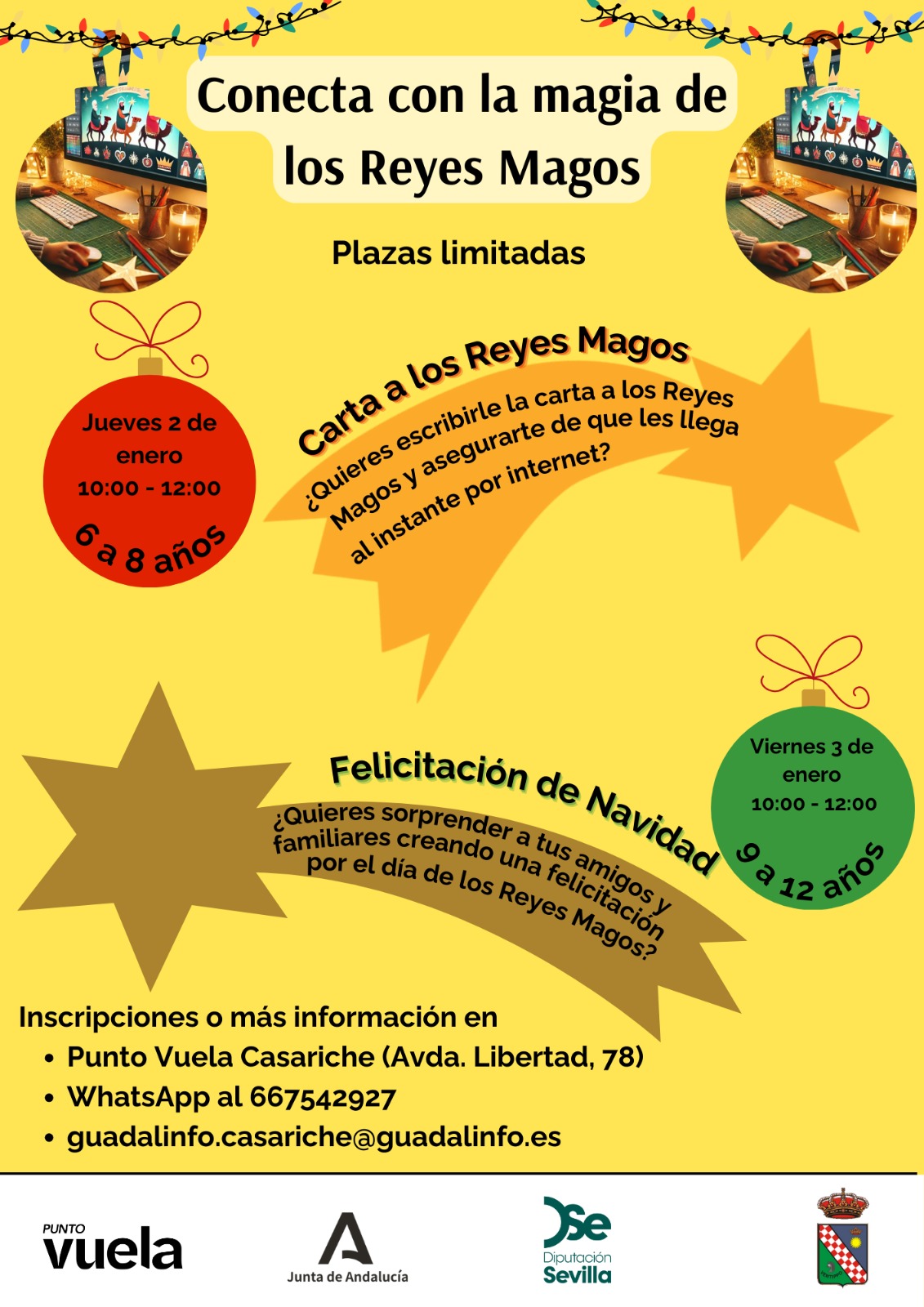 El Punto Vuela Guadalinfo de Casariche ha organizado dos talleres para que nuestros niños y niñas puedan conectar con la magia de los Reyes Magos.