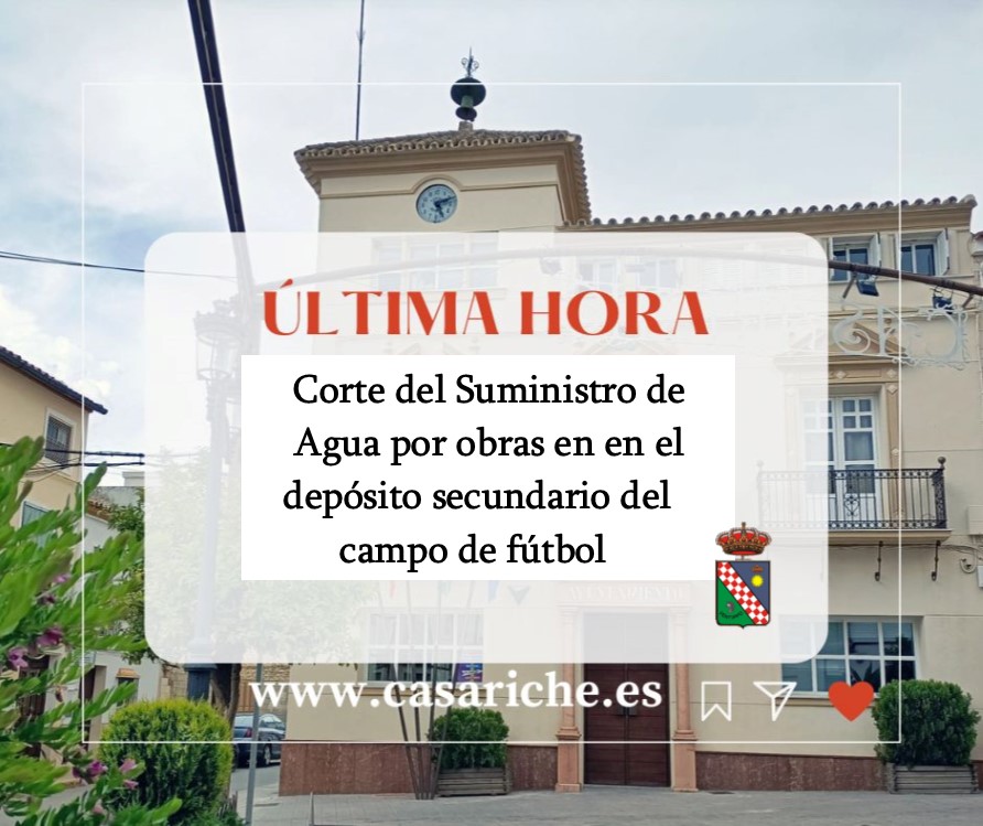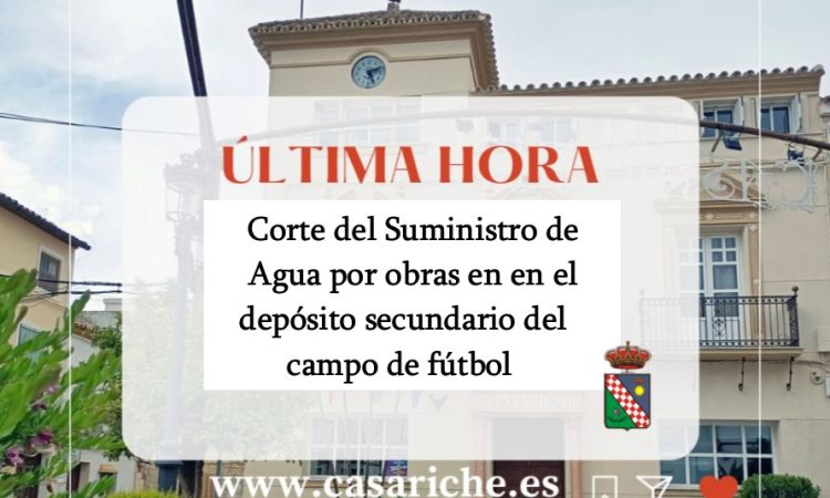 Desde la Delegación de Servicios Municipales informamos que, con motivos de las obras en el depósito secundario del campo de fútbol del polideportivo, a lo largo de la mañana del martes, 14 de enero pueden producirse cortes puntuales e intermitentes en el suministro de agua.