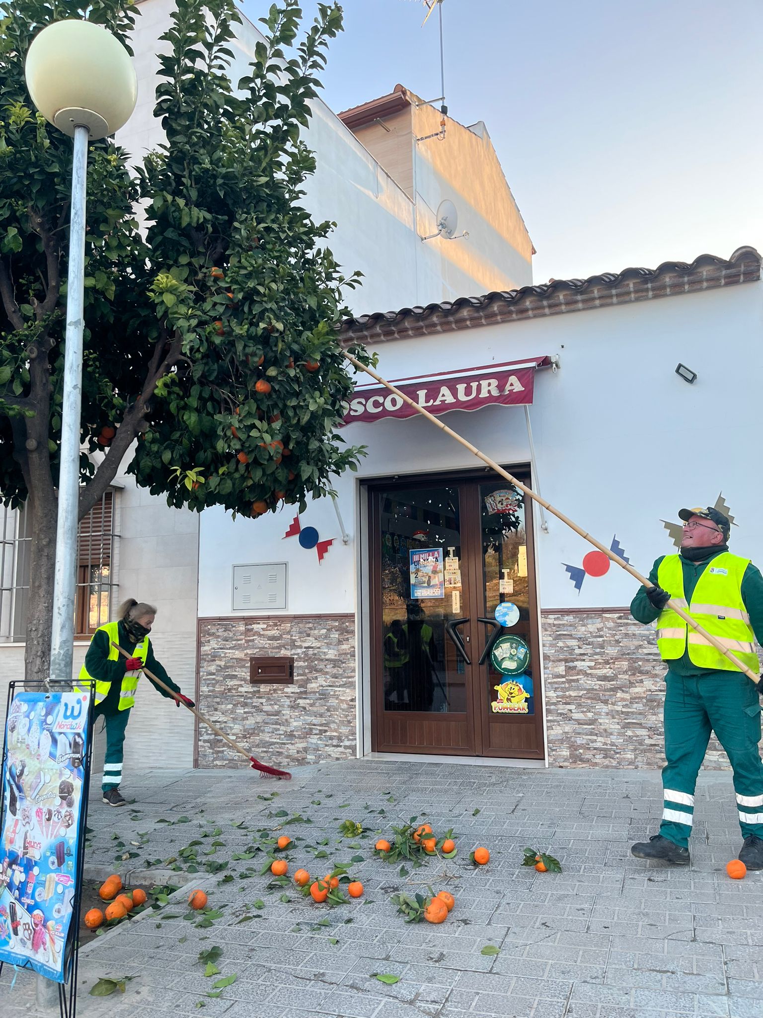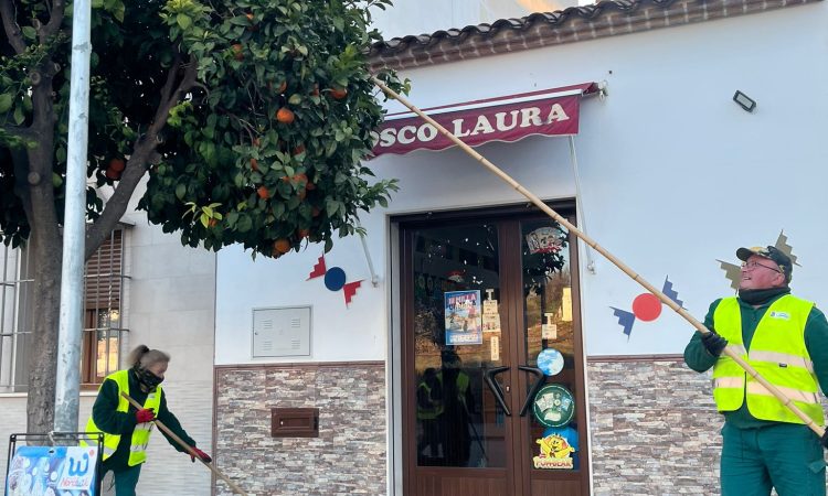 En estos días, se está llevando a cabo la recogida de naranja amarga en los árboles que se encuentran en las calles, plazas y parques de Casariche.