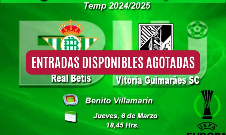 Informamos que se han agotado las entradas para el partido del Real Betis contra el Vitoria Guimaraes de Portugal.