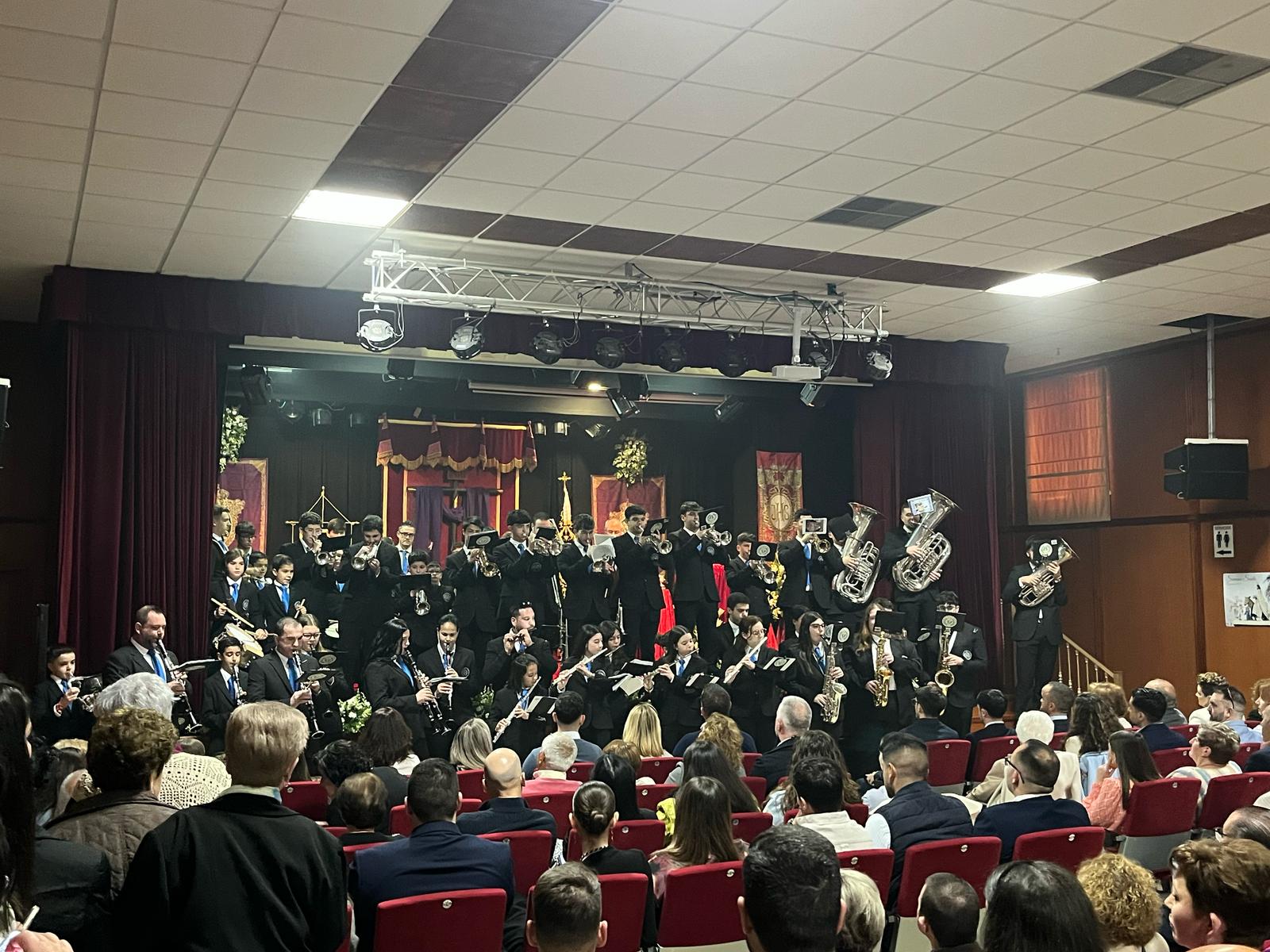 La Asociación Cultural Musical Maestro Vitito fue la encargada de abrir este solemne acto anunciador de nuestra Semana Santa interpretando las marchas ‘Madrugá Macarena’, ‘El Día del Señor’ y ‘Al Compás de tus Horquillas’.
