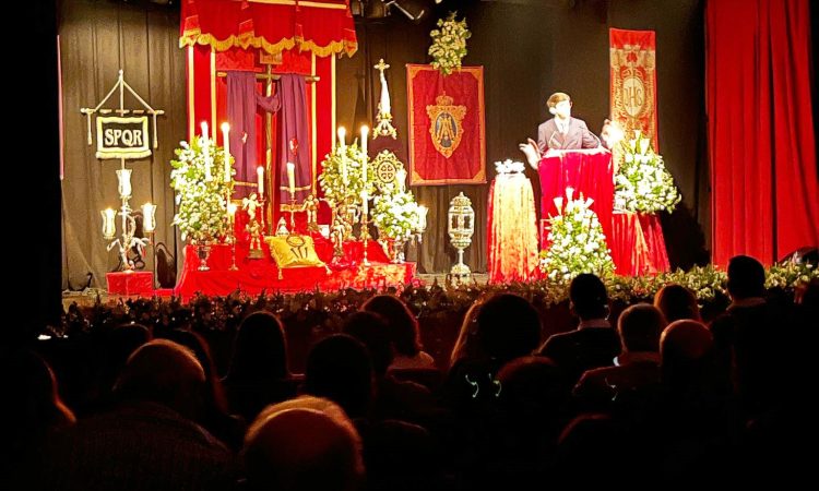 Este año, nuestro pregonero ha sido el joven Aarón Cádiz Cosano, quien hizo un repaso por las diferentes Hermandades y Estaciones de Penitencia desde el Domingo de Ramos hasta el Domingo de Resurrección desde el profundo cariño que siente por la Semana Santa de nuestro pueblo, aportando en su discurso vivencias y recuerdos familiares, que llegaron al corazón del público de principio a fin.
