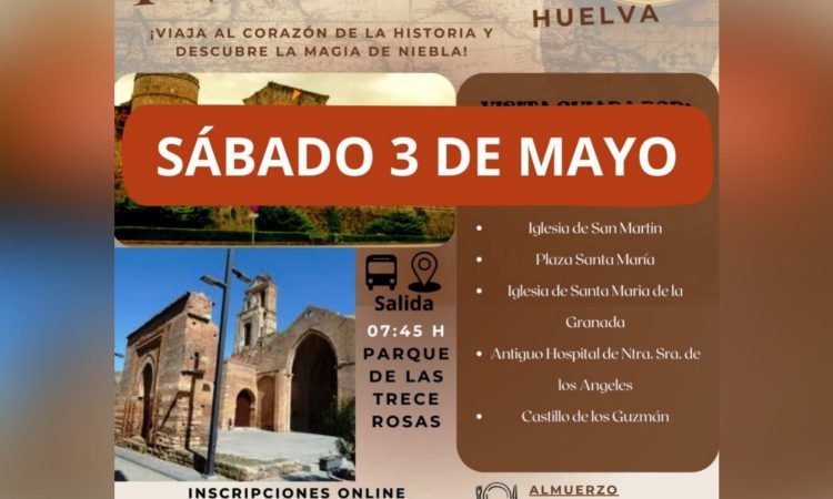 Recordamos a las personas inscritas que este viaje contempla la visita guiada a las murallas de Niebla, la puerta del Socorro, la Iglesia de San Martín, la Plaza de Santa María, la Iglesia de Santa María de la Granada, el antiguo Hospital de Ntra. Sra. de los Ángeles y el Castillo de los Guzmanes, así como el almuerzo y entradas a los monumentos que se van a visitar.