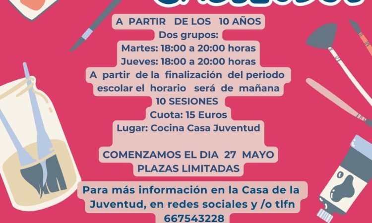 Este divertido taller, que comenzará el 27 de mayo, busca despertar la imaginación y originalidad de los participantes, que se organizarán en dos grupos. Cada grupo disfrutará de 10 sesiones, impartidas en la cocina de la Casa de la Juventud, todos los martes y jueves de 18:00 a 20:00 horas.