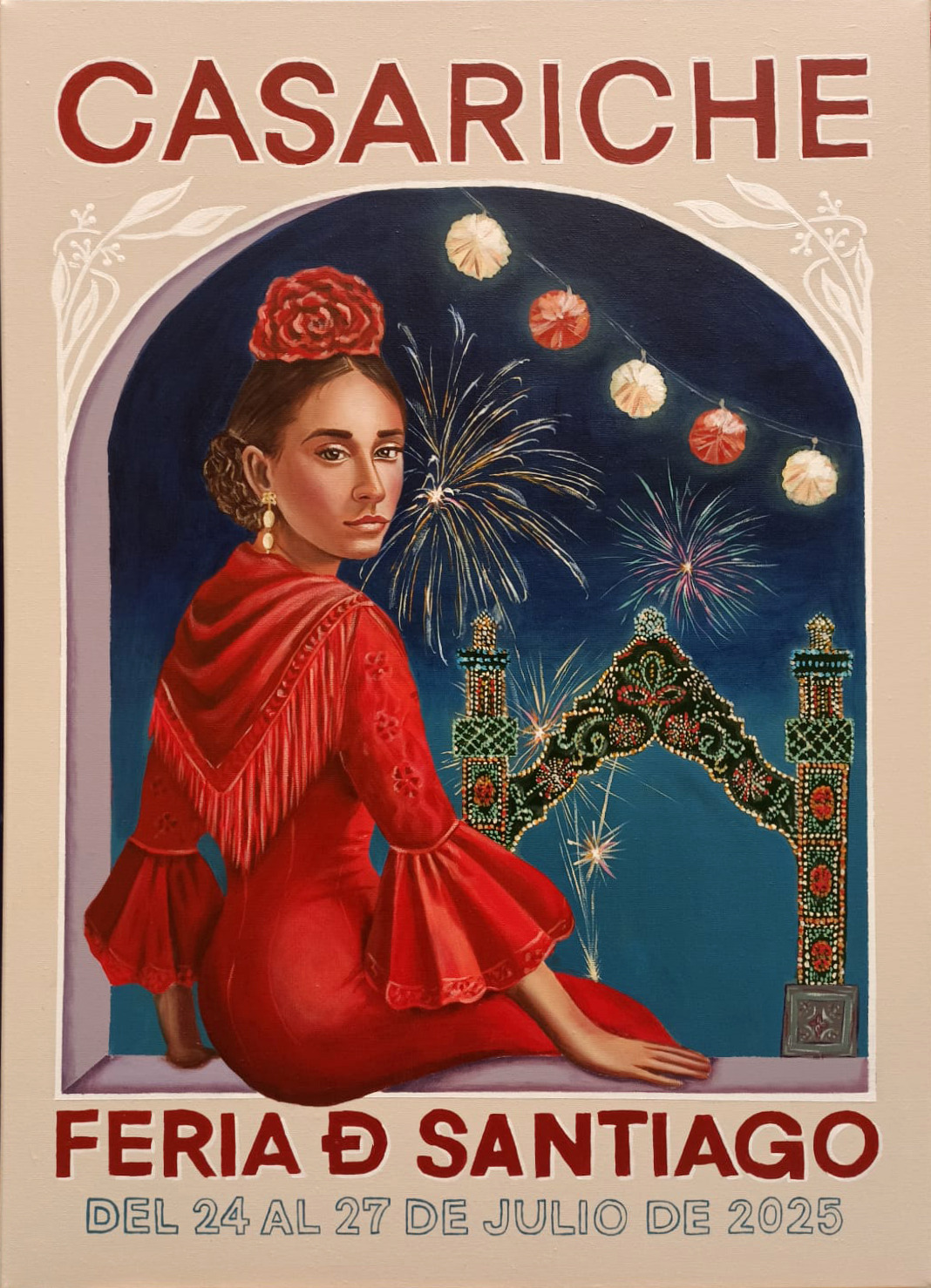 El artista pontanés Saúl Burgos Quero ha sido el ganador del XXXVII Concurso Local para la elección del Cartel Anunciador de la Feria de Santiago 2025, con una obra que destaca por su estilo refinado y luminoso.