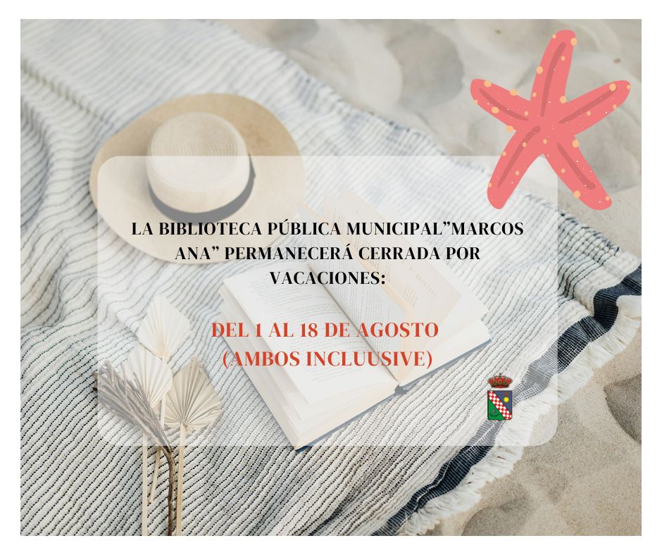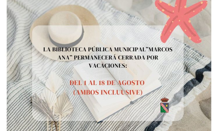 Desde la Delegación de Cultura informamos que la Biblioteca Municipal ‘Marcos Ana’ permanecerá cerrada por vacaciones del 1 al 18 de agosto (ambos inclusive).