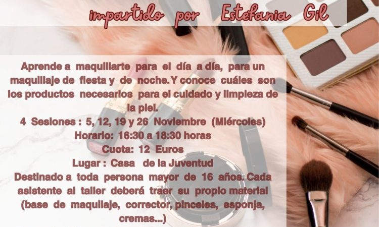 La Delegación de Juventud del Ayuntamiento de Casariche te invita a participar en un Taller de Maquillaje impartido por Estefanía Gil, donde descubrirás trucos y técnicas para brillar en cualquier ocasión.