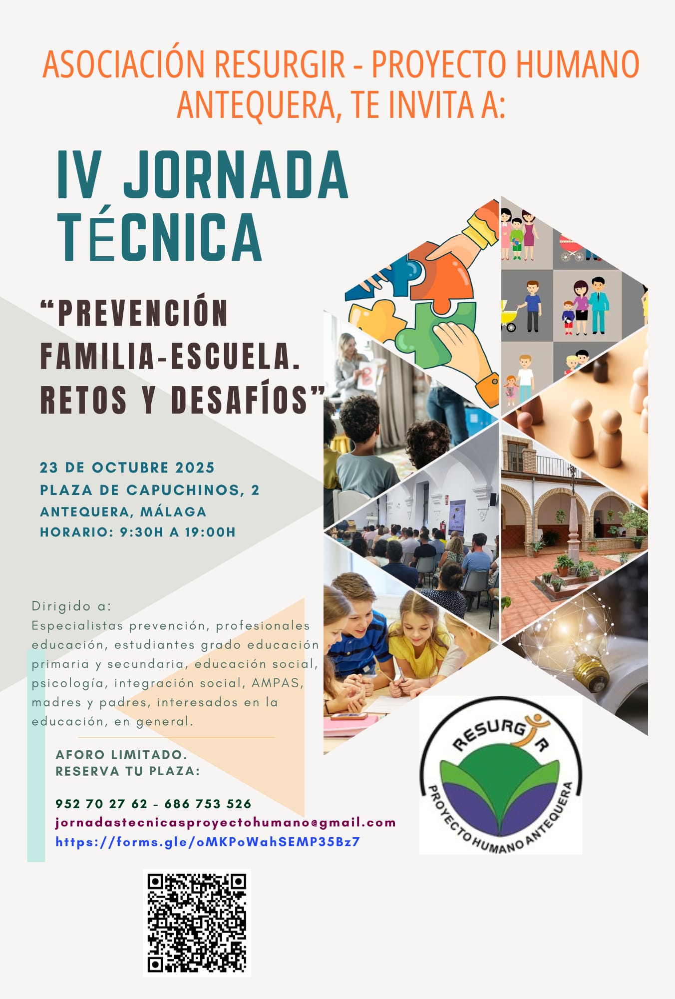 Las jornadas han sido muy completas y enriquecedoras. Han incluido la presentación del trabajo que desarrolla la Asociación Resurgir Proyecto Humano Antequera, así como mesas de expertos, talleres prácticos y un espacio de conclusiones donde se compartieron experiencias y buenas prácticas en materia de prevención.