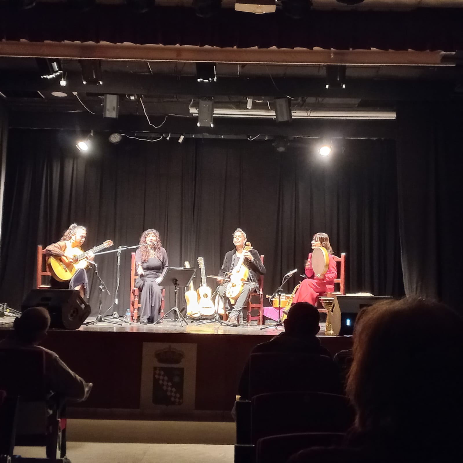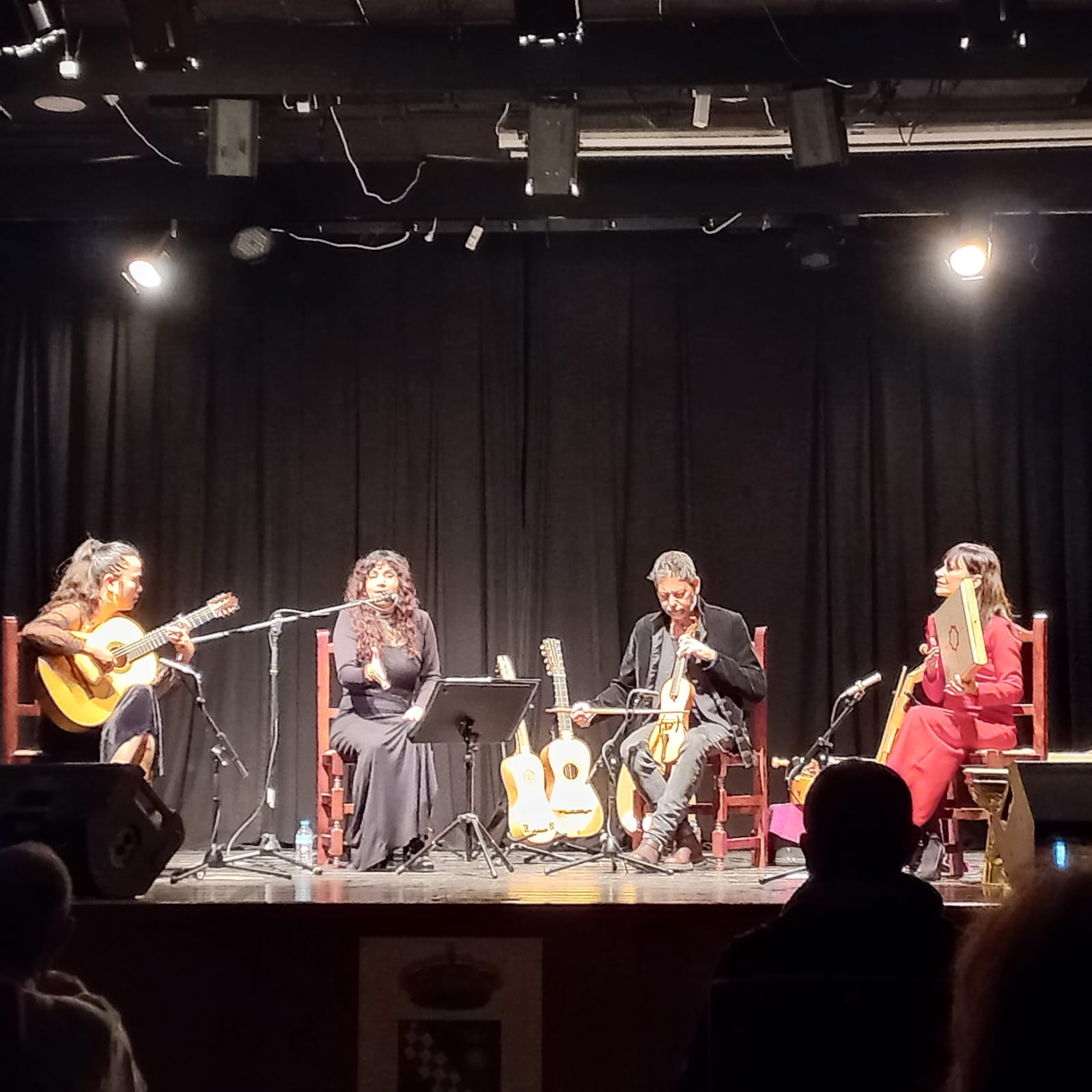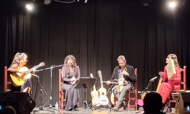 La propuesta sumergió al público en un recorrido por la evolución musical y poética de Andalucía, desde la huella sonora de Al-Ándalus hasta las raíces más profundas del flamenco. La agrupación empleó instrumentos históricos, recuperando timbres y sonoridades propias de distintas épocas, lo que aportó al espectáculo una atmósfera singular y evocadora.