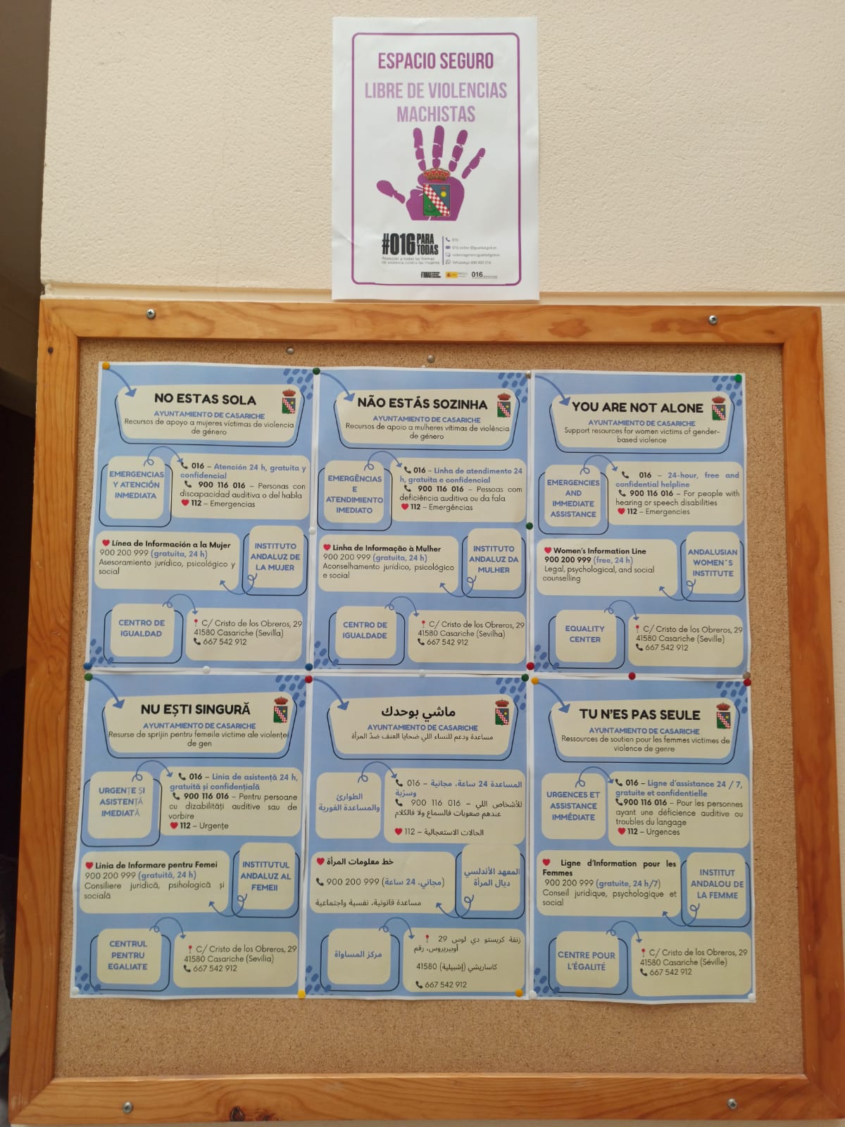 Toda esta información se encuentra ya visible en los edificios municipales y espacios públicos de Casariche, y forma parte de la campaña institucional contra la violencia hacia las mujeres con el proyecto “Casariche Territorio Violeta, V – Otra sociedad sí es posible”, que está ya en marcha y que reafirma el compromiso de nuestro municipio con la prevención, la sensibilización y el apoyo integral a las mujeres víctimas de violencia de género.