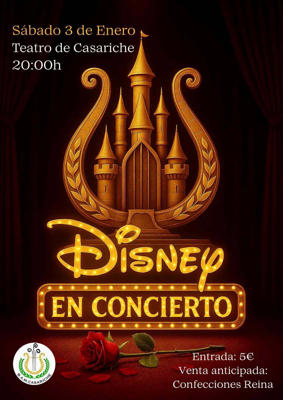 En Casariche arrancamos propuestas culturales del 2026 con música. El sábado 3 de enero, nuestro Teatro Municipal se llenará de magia y fantasía con la celebración del Concierto Disney, a cargo de Amigos de la Música de Casariche.