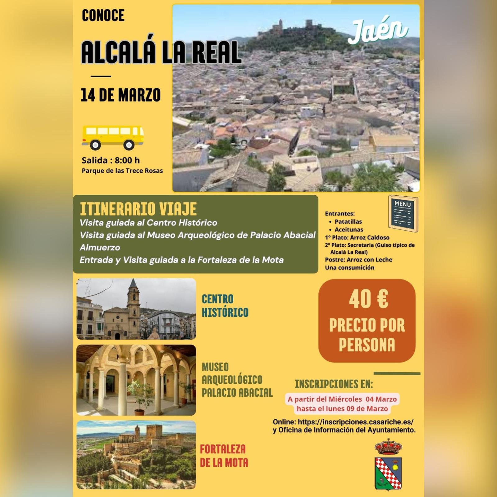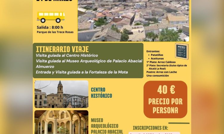 Y, en el día de hoy, abrimos las inscripciones para el viaje cultural que en este 2026 será a Alcalá la Real (Jaén) el próximo 14 de marzo, una jornada dedicada a conocer el patrimonio histórico y cultural de la localidad, con visitas guiadas y almuerzo incluido.