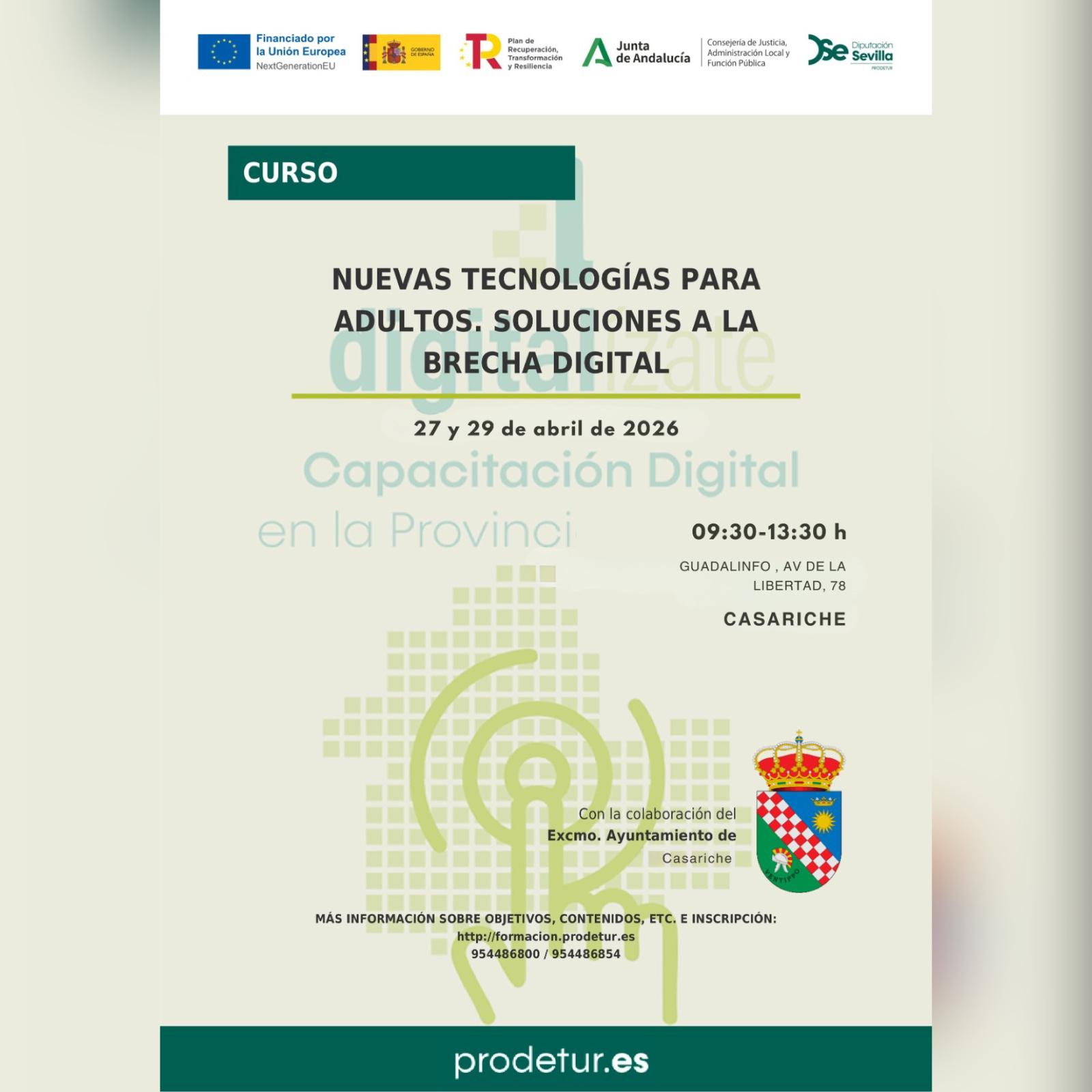 - Se impartirán en el Punto Vuela (Guadalinfo) de Casariche los días 27 y 29 de abril, en dos turnos: Mañana: de 09:30 a 13:30
