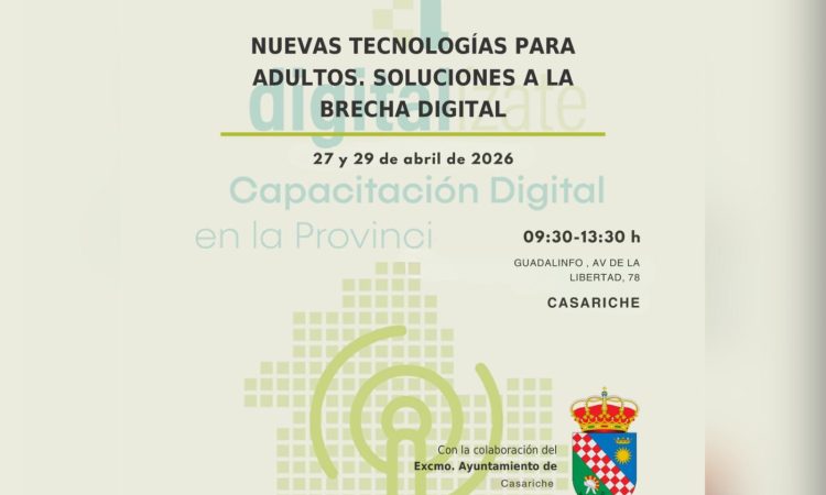 Nuestra localidad va a acoger dos nuevos cursos GRATUITOS pensados para ayudarte a desenvolverte mejor con la tecnología en tu día a día. Bajo el título “Nuevas tecnologías para adultos. Soluciones a la brecha digital”, esta formación está especialmente dirigida a personas mayores de 65 años y mujeres de cualquier edad que aún no la hayan realizado.