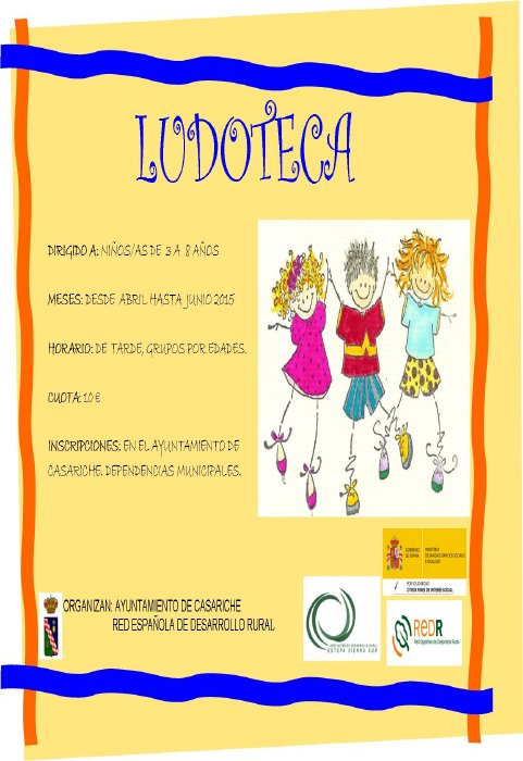 El próximo 6 de Abril dará comienzo la ludoteca dirigida a niños/as de 3 a 8 años. Como viene siendo habitual, este servicio, que estará en marcha hasta Junio, se llevará a cabo en las aulas del Centro de Día Temporero.