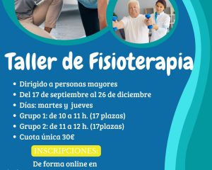 Leer másA partir de hoy puedes apuntarte al Taller de Fisioterapia dirigido a Personas Mayores que se impartirá en nuestra localidad del 17 de septiembre al
