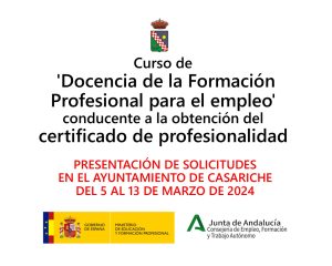 Desde el Área de Formación y Empleo del Ayuntamiento de Casariche, se informa que el proyecto de Formación Profesional para el Empleo gestionado por este