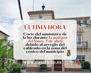 El Ayuntamiento informa que el lunes 1 de abril por la mañana se cortará el suministro eléctrico para la ejecución de unos trabajos de arreglo