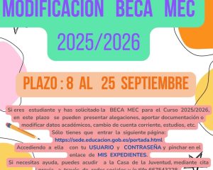 El Ministerio de Educación ha abierto el plazo para modificar los datos de las solicitudes de la Beca MEC correspondientes al curso académico 2025/2026. Si