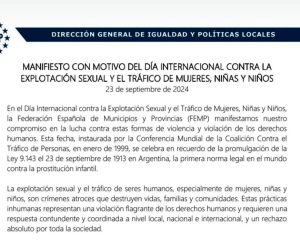 Leer másCasariche se adhiere a la conmemoración del Día Internacional contra la Explotación Sexual y el Tráfico de Mujeres, Niñas y Niños, haciéndose eco del manifiesto