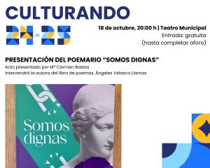 El pasado viernes, 18 de octubre, la escritora Ángeles Velasco eligió nuestro teatro municipal para presentar su segundo libro «Somos Dignas». En primer lugar, fue