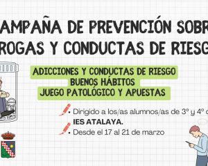 Desde hoy 17 y hasta el próximo 21 de marzo se van a impartir en el IES Atalaya unas sesiones informativas sobre adicciones y conductas