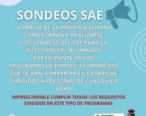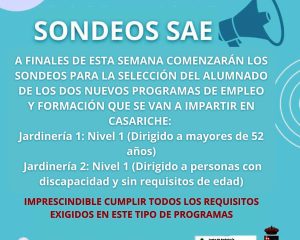 El Ayuntamiento informa que a finales de esta semana comenzarán los sondeos del Servicio Andaluz de Empleo (SAE) para la selección del alumnado participante en