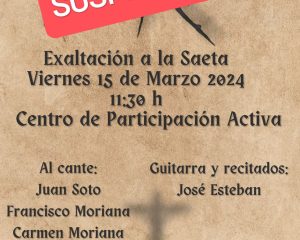 Leer másPor causas ajenas a la organización, se ha suspendido el acto de exaltación a la saeta que iba a celebrarse este viernes 15 de marzo